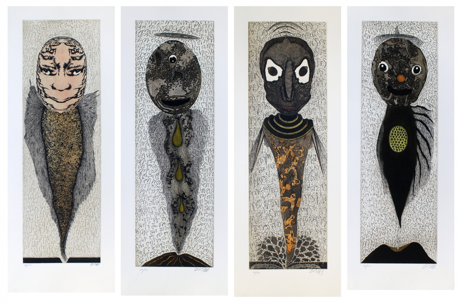 4 Original-Farbradierunge auf Guarro-Bütten